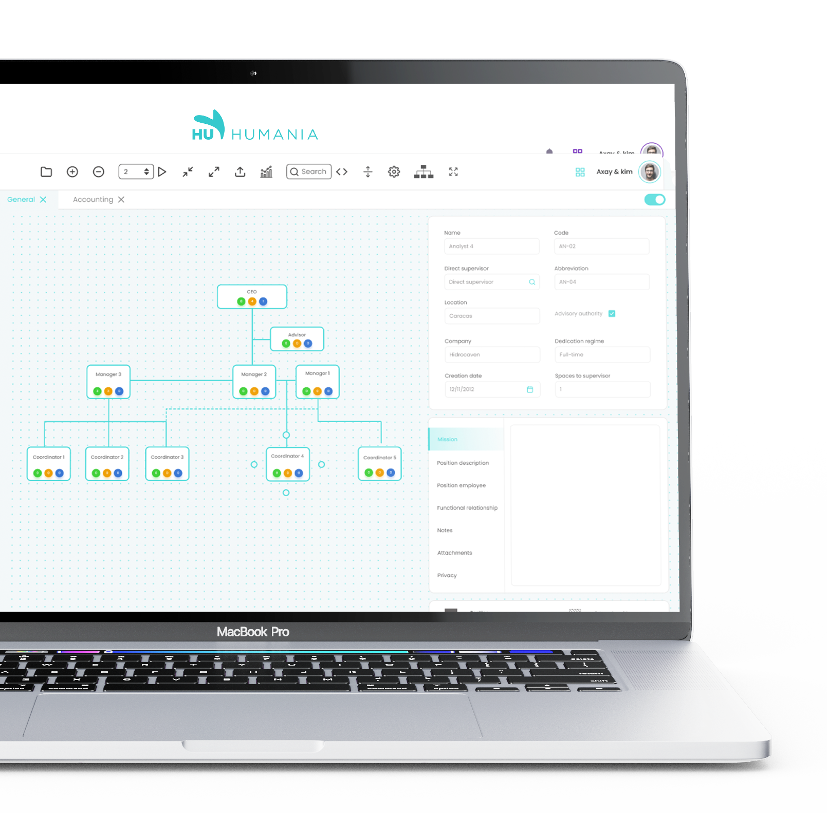 Ahorra tiempo y consulta todos los datos relevantes de la estructura de tu empresa con Humania. Consigue todas las descripciones de cargo, recuerda la jerarquía de un departamento o conoce el supervisor de un colaborador, todo desde un solo lugar.